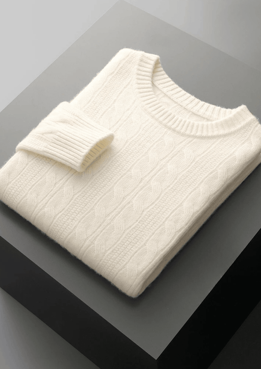 PURE MERINO WOOL CABLE KNIT CREWNECK