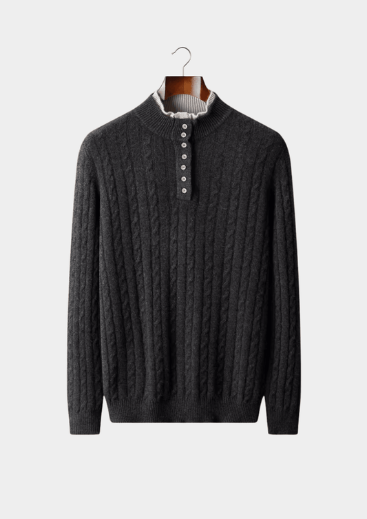 PURE MERINO WOOL CABLE KNIT HENLEY SWEATER